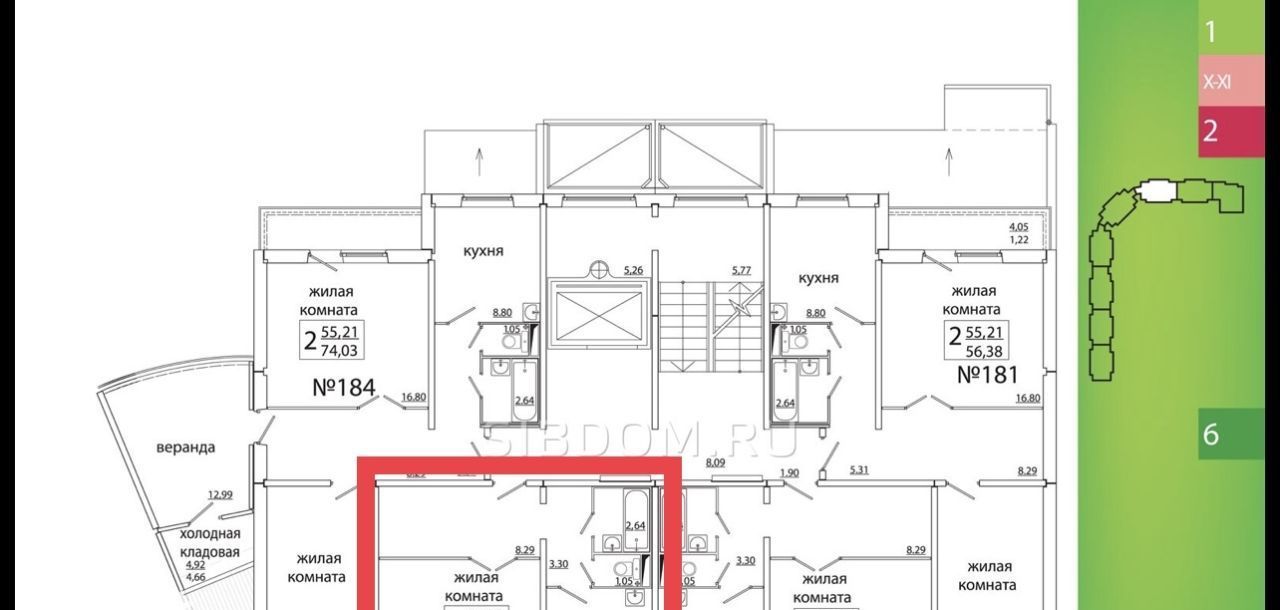Квартира расположена на комфортном среднем этаже, что является оптимальным вариантом - не слишком высоко и не низко.