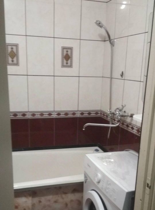 Собственник сдаст в аренду (предпочтительно семье не курящих, без животных) на длительный срок ухоженную, однокомнатную квартиру. Кафель на стенах в ванне, кухне, туалете и на полу в ванне и туалете. В остальных помещениях линолеум. На кухне электроплита, новый холодильник, кухонный гарнитур, стол, стулья. В комнате напольные тумбы. Новая стиральная машинка в ванне. Есть гардеробная 2,5 м.кв. с двумя шкафами. шкаф в прихожей.