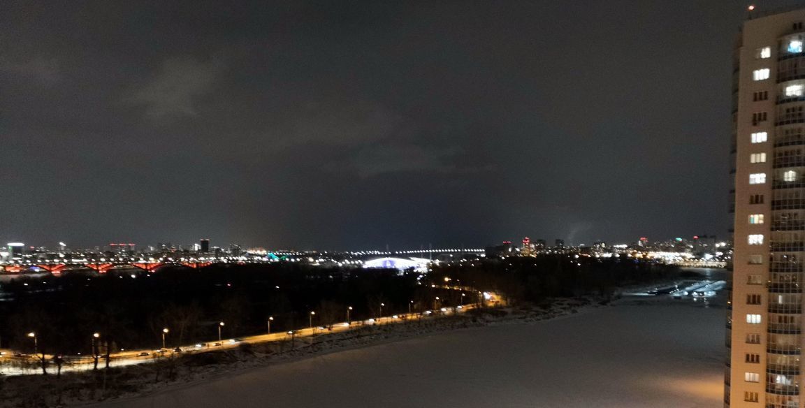 Панорамный вид: с 15 этажа и застекленной лоджии открывается захватывающий вид на Енисей и огни города.