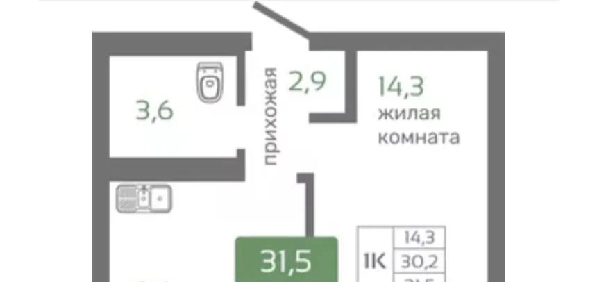 1-к кв. Красноярский край, Красноярск Норильская ул., 64 (31.5 м²)