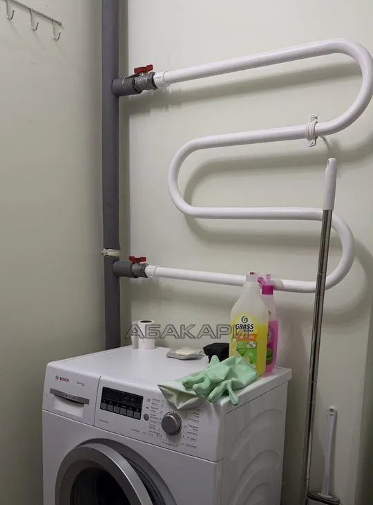 Квартира оснащена необходимой бытовой техникой, включая стиральную машину. Из мебели имеются шкафы.