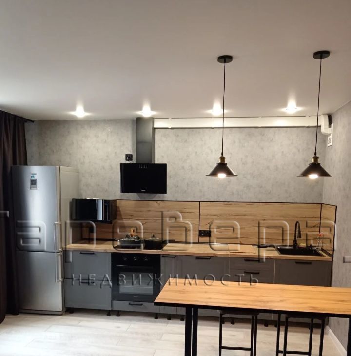 Квартира разделена на 2 зоны кухня + гостинная. Есть остекленный балкон и вместительная гардеробная комната.