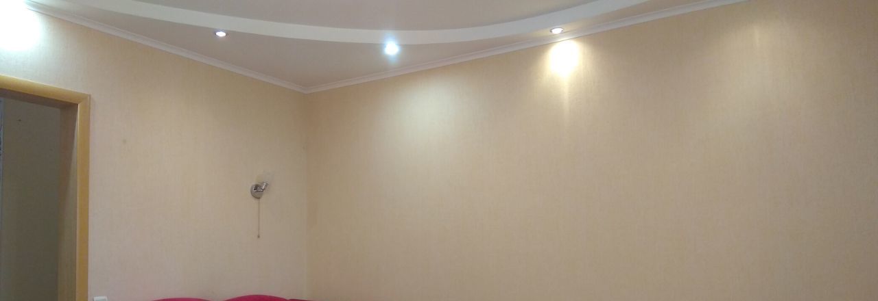 - Просторная комната (новый ортопедический матрас средней жесткости и основание, диван, журнальный столик, стулья, телевизор.
