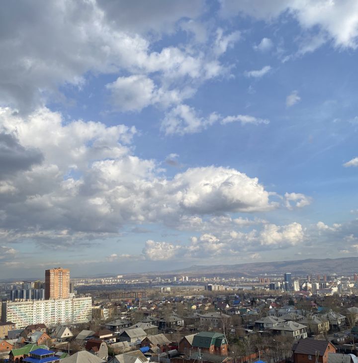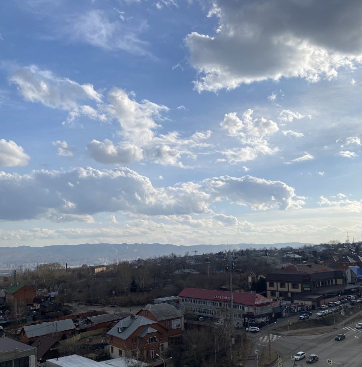 Квартира с видом на центр и правый берег. Видны октябрьский, коммунальный, вантовый мосты; горы - бобровый лог, сопку, покровскую гору; Енисей.
