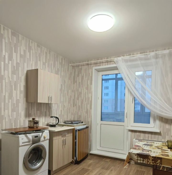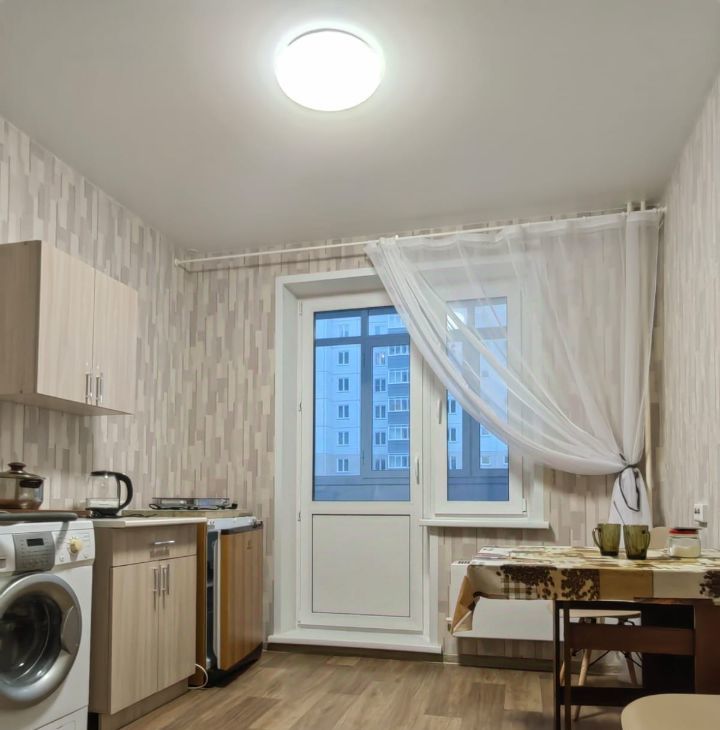 Квартира находится на 6 этаже 17 ти этажного панельного дома. Дом 2022 года, аккуратный подъезд. В квартире из мебели : диван, тумбы под посуду, обеденная группа, холодильник , стиральная машина. шкаф в прихожей.