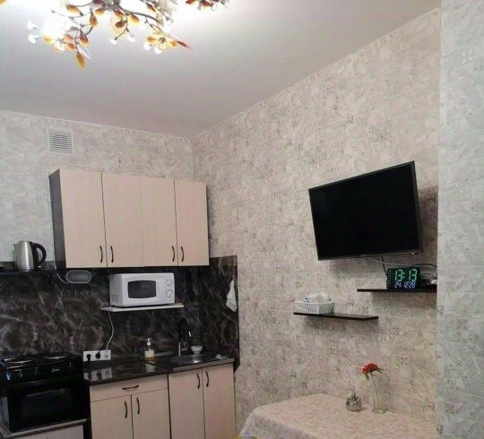 Квартира укомплектована всей необходимой мебелью и техникой. Есть микроволновка, утюг, пылесос, сушилка, гладильная доска, телевизор, посуда, подушки, одеяло... Площадь 21м2. На 3 этаже в 19-ти этажном доме. Стоимость 20 000 + свет и вода. + 10 000 залог, который можно разделить на 2 месяца.