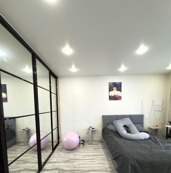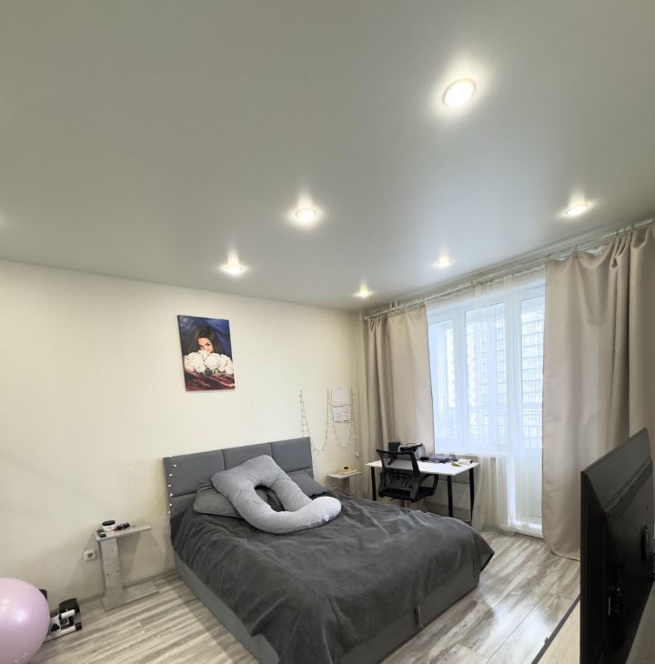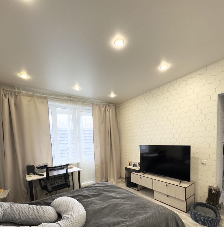 Квартира с современным евроремонтом, тщательно продуманная планировка и качественная отделка. В просторной комнате и на кухне установлена современная мебель, которая может остаться новым владельцам. Санузел совмещенный, оснащен всем необходимым. В комнате установлен встроенный шкаф. В квартире есть балкон, откуда открывается вид на улицу.