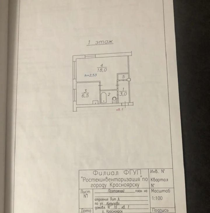 1-к кв. Красноярский край, Красноярск ул. Кутузова, 16 (31.3 м²)
