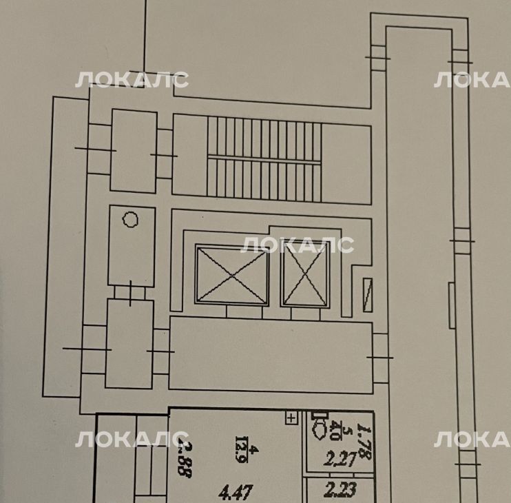 Кухня занимает 12.9 квадратных метров, что позволяет использовать её как дополнительную комнату со спальным местом. Квартира оборудована общим санузлом. Имеется кладовая, можно использовать, как гардеробную.