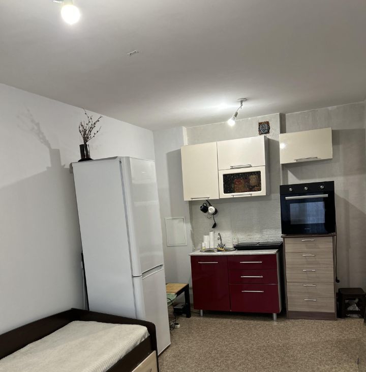 Есть все необходимое для жилья. Холодильник, стиральная машинка, плита на 2 конфорки, духовой шкаф, микроволновая печь, небольшой телевизор, кухонный гарнитур, кровать односпальная, двухспальный диван, кухонный стол, стулья, чайник, комод.