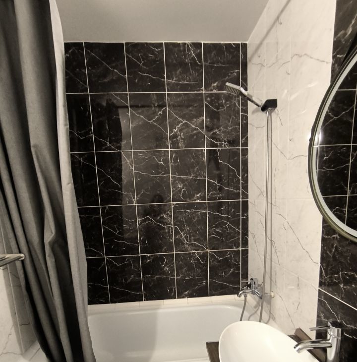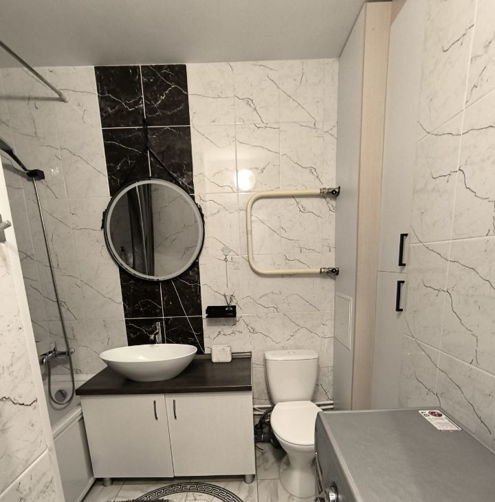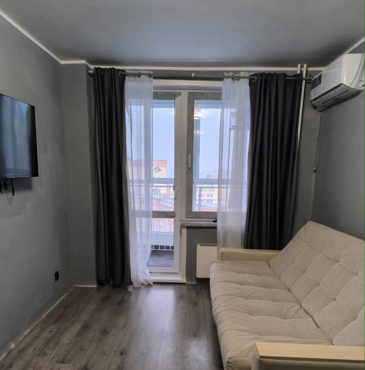 Квартира с евроремонтом, полностью готова для комфортного проживания. В комнате и на кухне есть вся необходимая мебель. Установлены кондиционер, холодильник, посудомоечная и стиральная машины, а также телевизор. Ванная комната оборудована ванной, сантехника в отличном состоянии, кафель +керамогранит