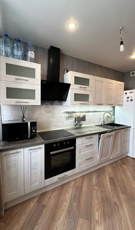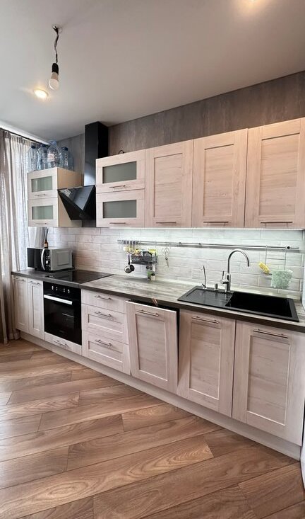 В квартире вы найдете: • Кухонный гарнитур, встроенный духовой шкаф, плиту, СВЧ печь, холодильник, чайник, диван, большую кровать 160х200, места для хранения вещей, телевизор, стиральную машинку.