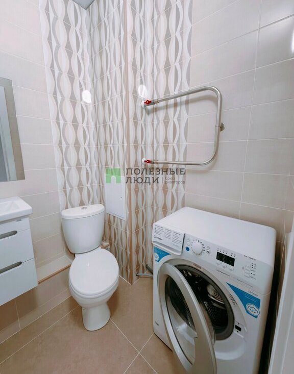 в ванной и санузле - стиральная машинка, система хранения, зеркало