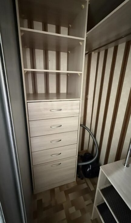 Есть большая гардеробная , шкаф-купе зеркальный , вся техника (посудомойка, холодильник , плита, вытяжка , чайник, микроволновая печь, стиральная машина, телевизор , утюг) диван, комод.
