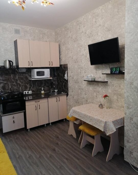 Квартира укомплектована всей необходимой мебелью и техникой. Есть микроволновка, утюг, пылесос, сушилка, гладильная доска, телевизор, посуда, подушки, одеяло... Площадь 21м2. На 3 этаже в 19-ти этажном доме. Стоимость 20 000 + свет и вода. + 10 000 залог, который можно разделить на 2 месяца.