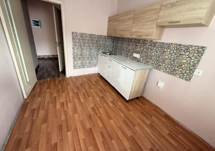 В квартире имеется: кухонный гарнитур, кухонный стол, стулья, электрическая плита.