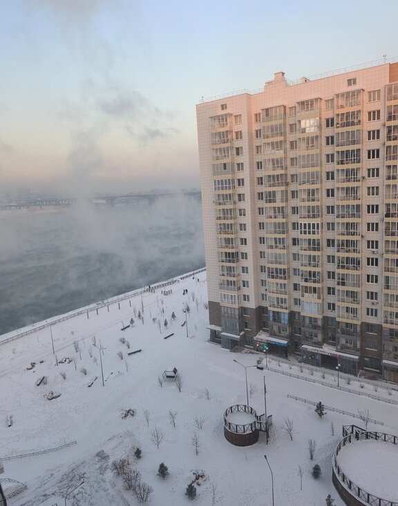 Первая линия от Набережной, выход сразу к Енисею.
