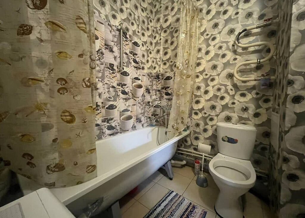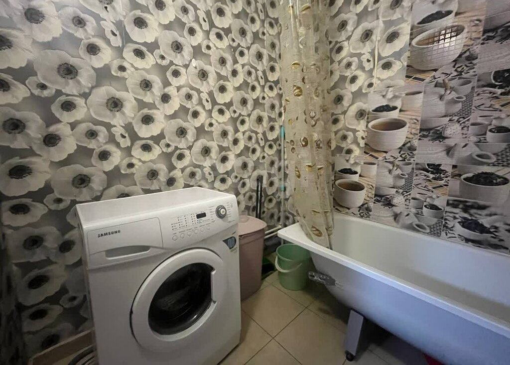 В квартире есть все для проживания: кровать, два дивана, шкаф, горка под телевизор, стиральная машина, плита, холодильник, микроволновка.