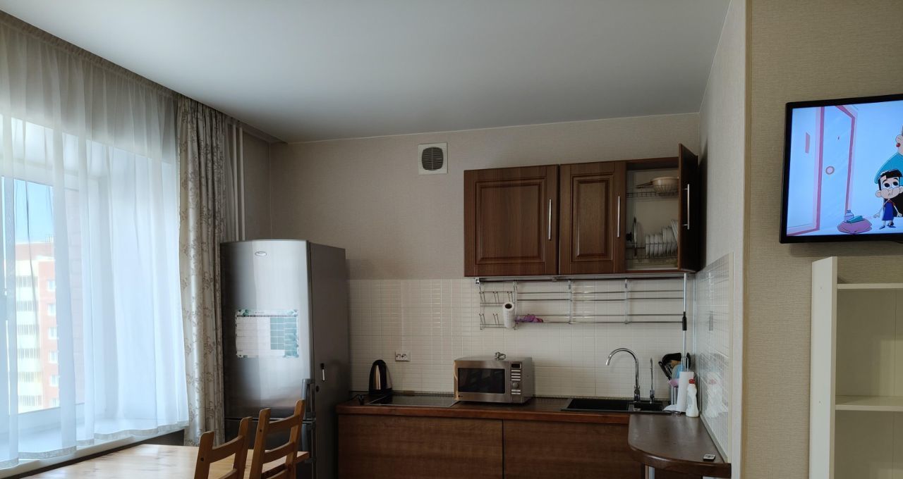 Квартира полностью готова для комфортного проживания. В ней есть вся необходимая мебель на кухне и в комнате.