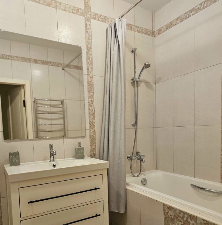 В квартире сделан евроремонт, поэтому всё выглядит свежо и современно. В комнатах и на кухне есть вся необходимая мебель. Кухня оснащена современной техникой: холодильником, посудомоечной машиной и кондиционером. В комнате установлен телевизор, а также есть стиральная машина. В ванной комнате установлена ванна, что позволит расслабиться после насыщенного дня. Просторная лоджия станет отличным местом для утреннего кофе или вечернего отдыха.