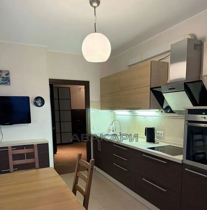Кухня оборудована современной техникой и обеденной зоной. Санузел раздельный, оформлен стильной плиткой. Есть балкон с видом на город.