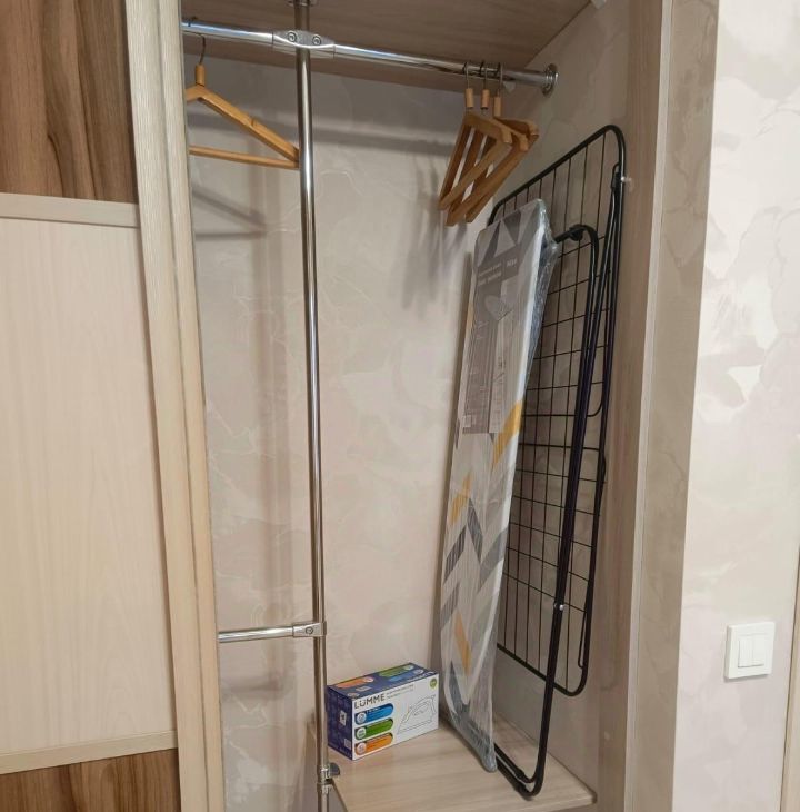 Квартира практически полностью укомплектована. Имеются: встроенные шкафы для одежды (в коридоре и в комнате), кухонный гарнитур, кухонный стол со стульями, диван (раскладывается). Бытовая техника: холодильник, эл.плита, чайник, стиральная машина, утюг, гладильная доска, сушка для одежды. Мебель новая. Также имеется телевизор, подключено кабельное телевидение, проведен интернет, имеется WI-FI.
