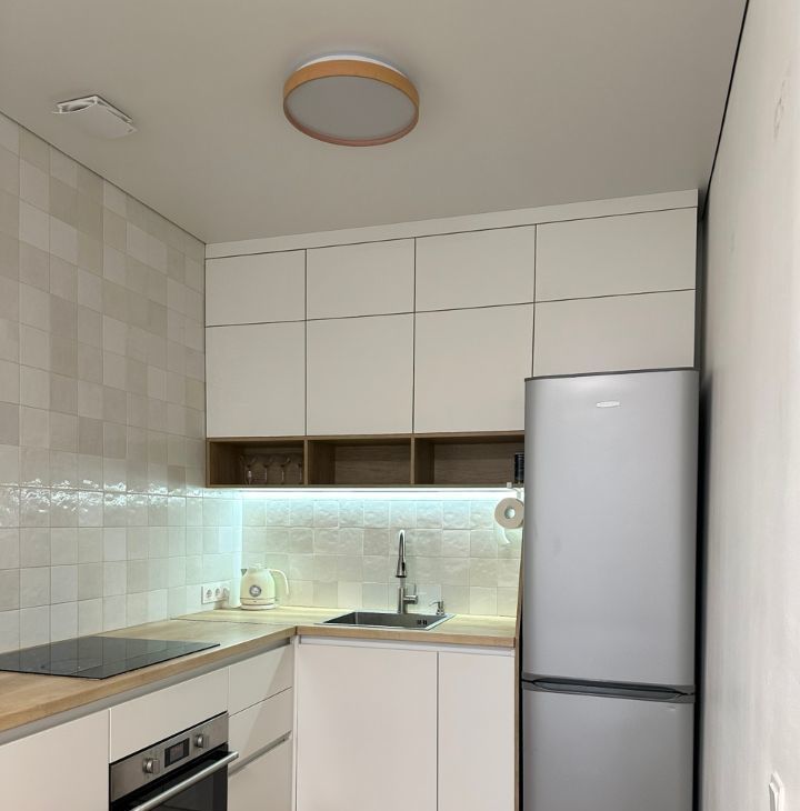 * кухня полностью укомплектована всей необходимой техникой: чайник, микроволновка, тостер, холодильник, духовой шкаф, варочная панель,