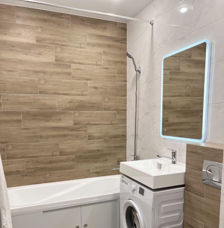 В квартире сделан современный, свежий ремонт в едином стиле.
