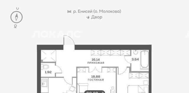 2-к кв. Красноярский край, Красноярск наб. Южная, 6 (68.3 м²)