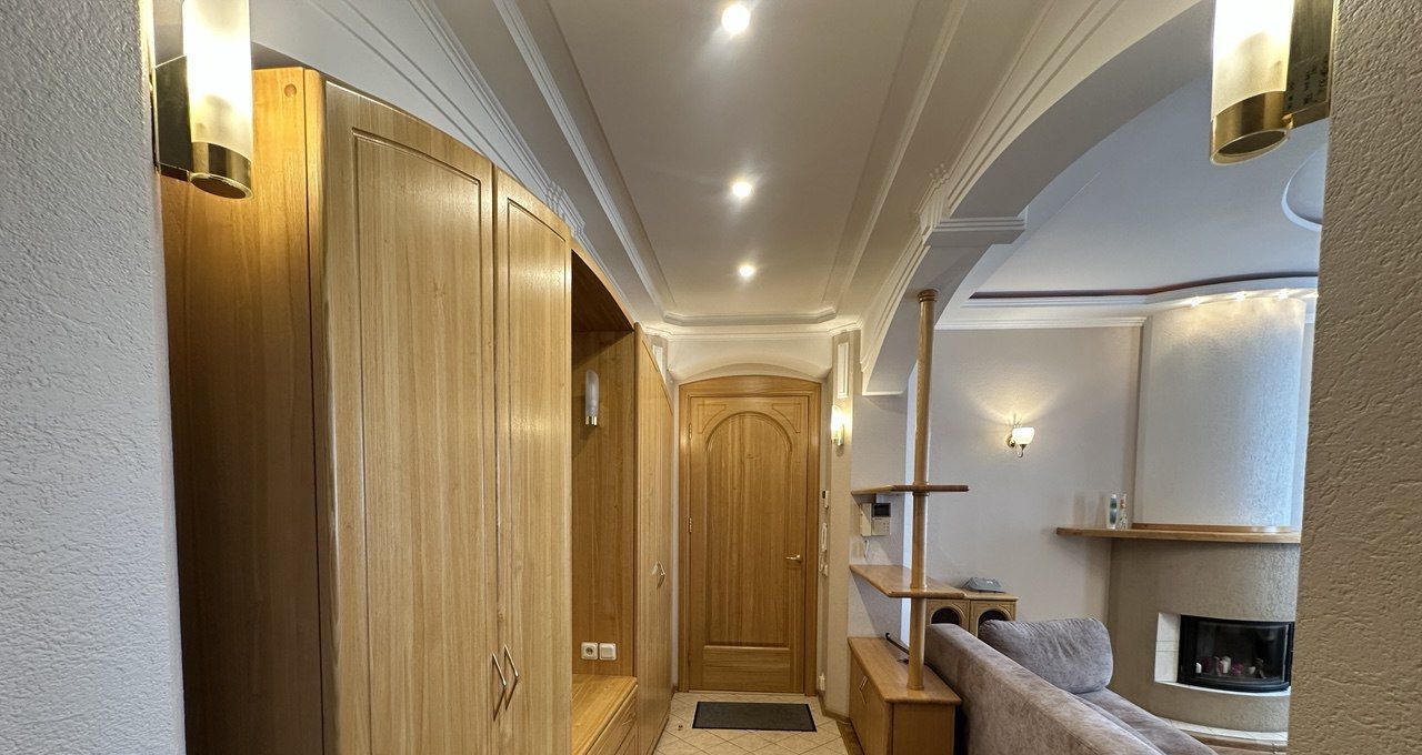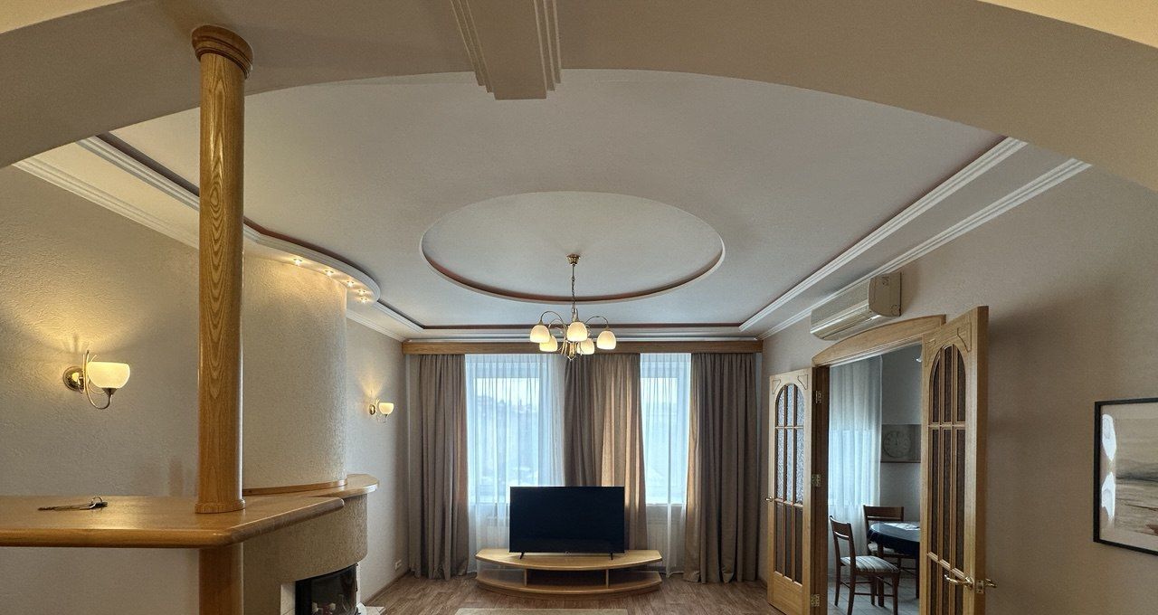 — Фигурные потолки с подсветкой, арочные проёмы, деревянные двери