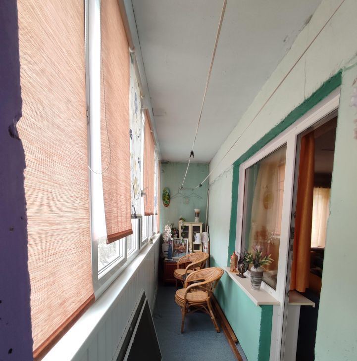 Квартира частично отремонтирована. Большая лоджия, застеклённая, пластиковые окна, длина лоджии захватывает обе комнаты.