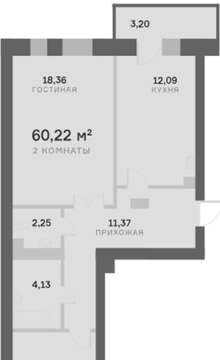 2-к кв. Красноярский край, Красноярск Регатная ул., 1 (61.0 м²)
