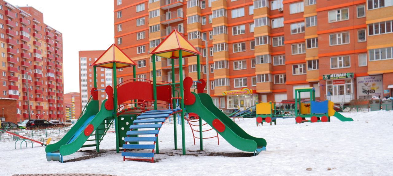 Придомовая территория благоустроена: здесь расположен ухоженный двор с детской площадкой, зелеными зонами и достаточным количеством парковочных мест.