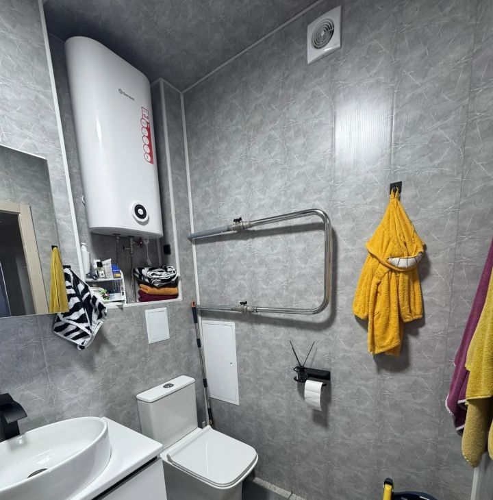 Санузел совмещен. Заменена входная дверь , что обеспечивает дополнительную звукоизоляцию.