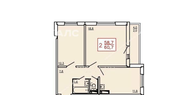 2-к кв. Красноярский край, Красноярск Свердловская ул., 6Д (58.7 м²)