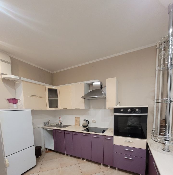 Квартира частично меблированная, кухонный гарнитур, духовой шкаф, плита, холодильник, большой шкаф купе, стиральная машинка автомат.
