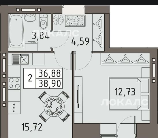 * Совмещённая кухня-гостиная + отдельная спальня.