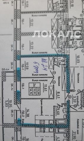 2-к кв. Красноярский край, Красноярск Комсомольский просп., 1 (53.9 м²)