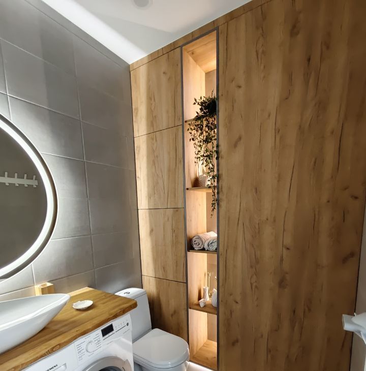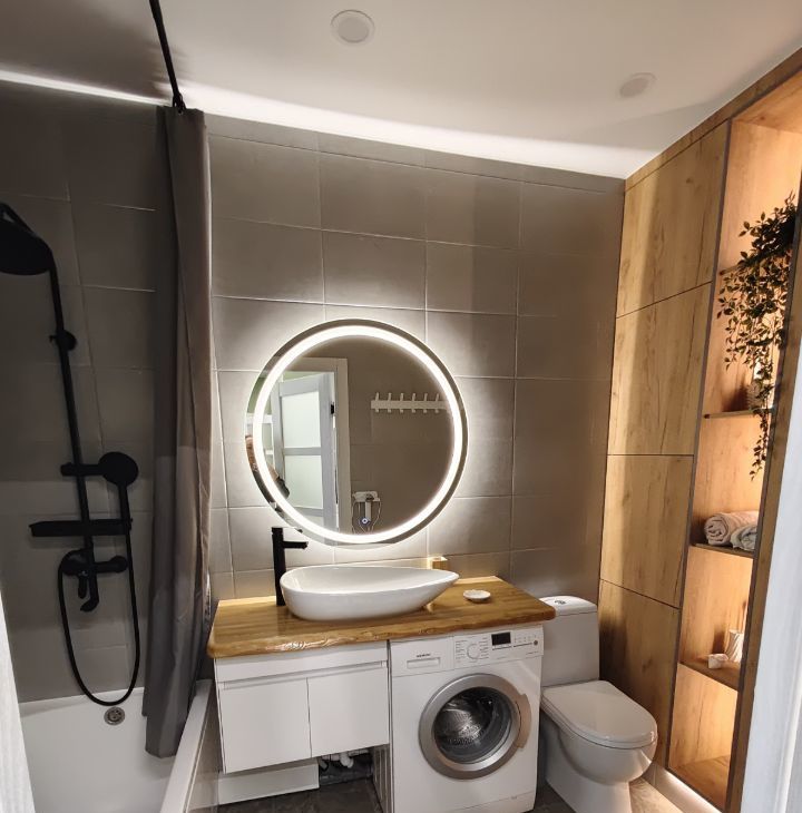 Санузел совмещенный, выполнен в современном стиле с качественной отделкой. В наличии стиральная машина .