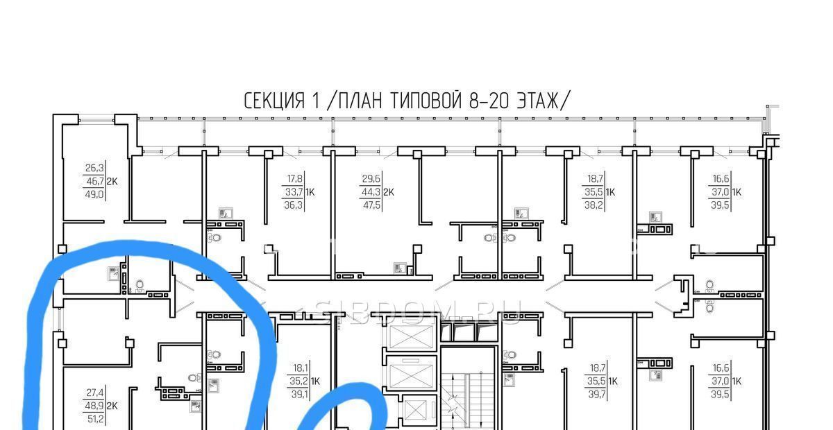 2-к кв. Красноярский край, Красноярск ул. Александра Матросова, 34 (49.4 м²)