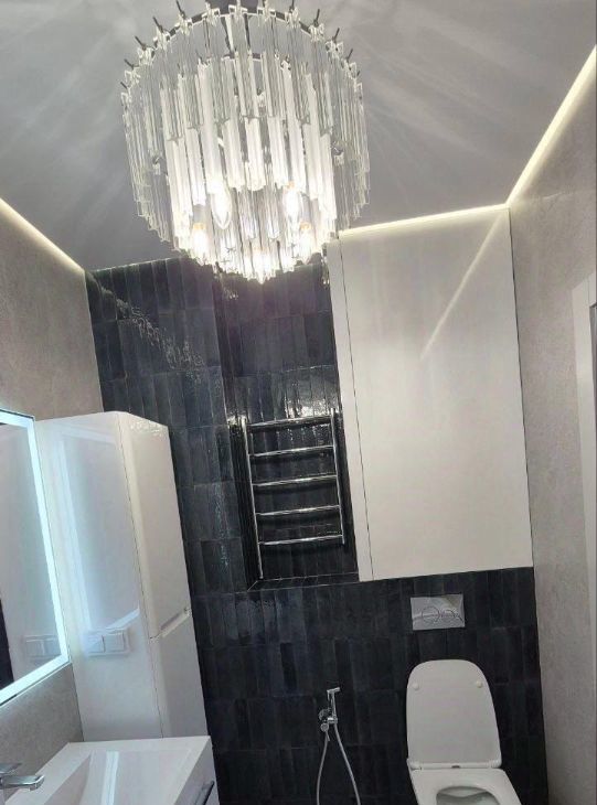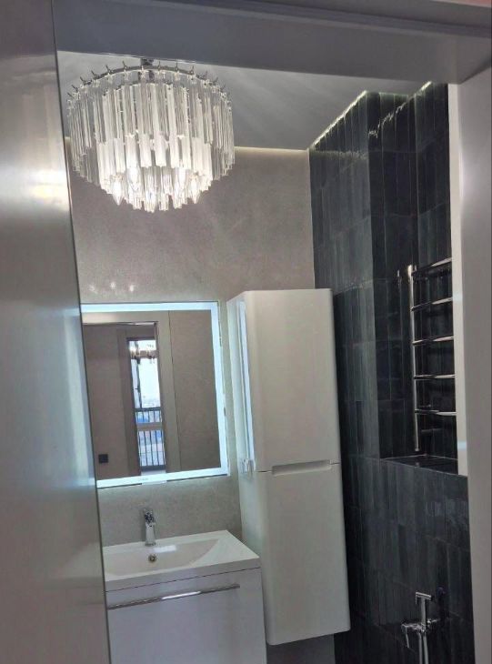 - Напольное покрытие из натурального камня и дорогого ламината, дополнительно оборудован подогрев пола .