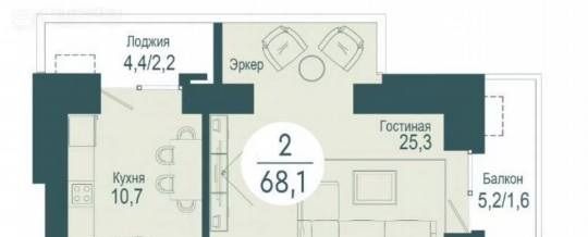 - Общая площадь: 68 м²