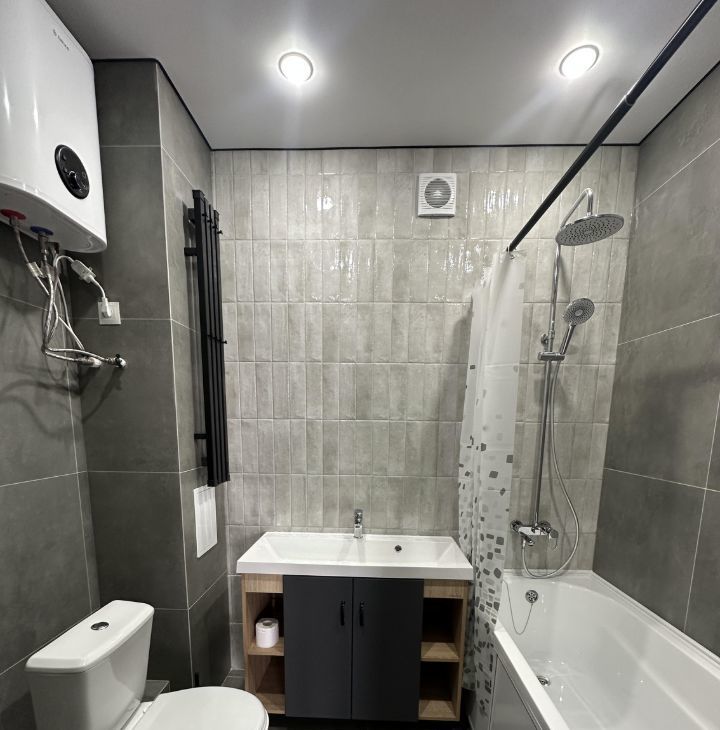 В квартире есть всё необходимое для комфортного проживания. На кухне и в комнате установлена современная мебель. К вашим услугам вся необходимая техника: кондиционер, холодильник, телевизор и стиральная машина. Ванная комната оборудована ванной и бойлером. Благодаря евроремонту, обстановка в квартире свежая и приятная.