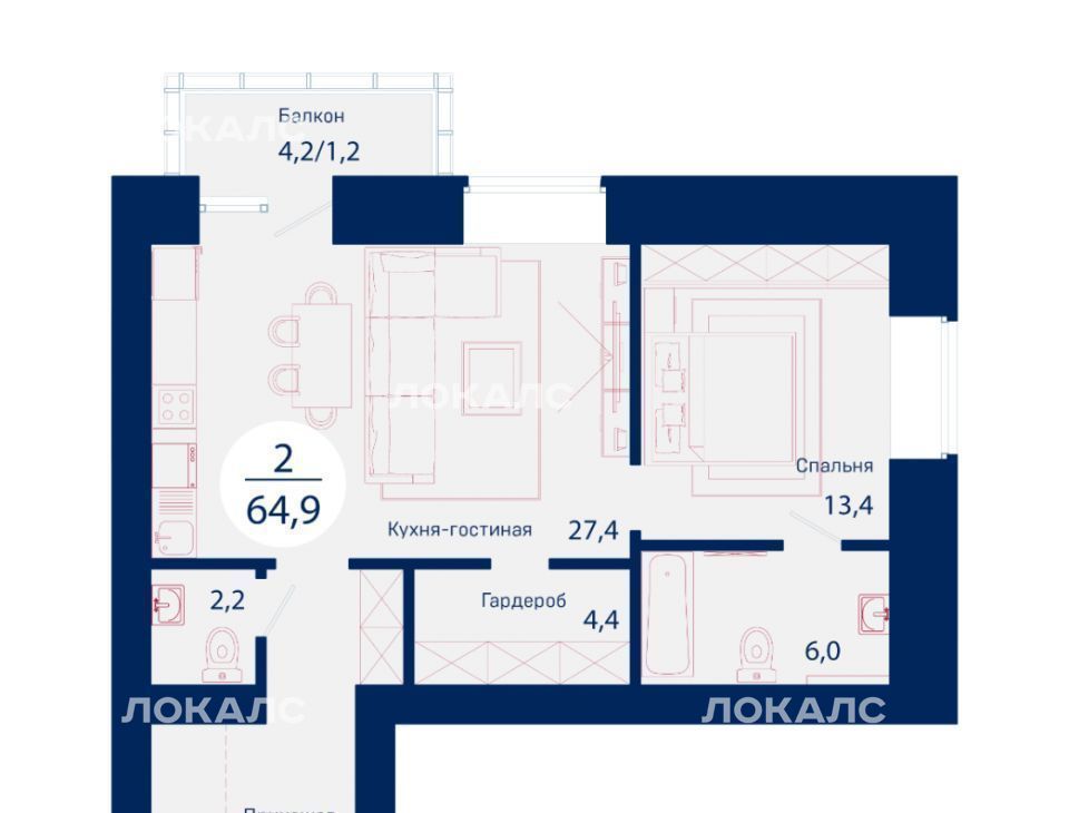 2-к кв. Красноярский край, Красноярск ул. Авиаторов, 4Д (65.1 м²)