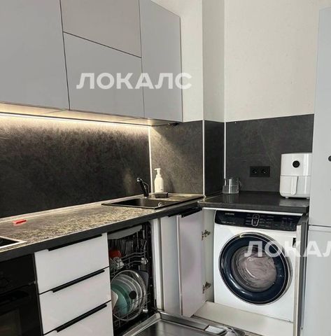 За счет этого хорошее зонирование и больше пространства. Кухонный гарнитур с техникой оставляем.(плита, духовой шкаф, вытяжка, посудомойка, но так же можем оговорить)