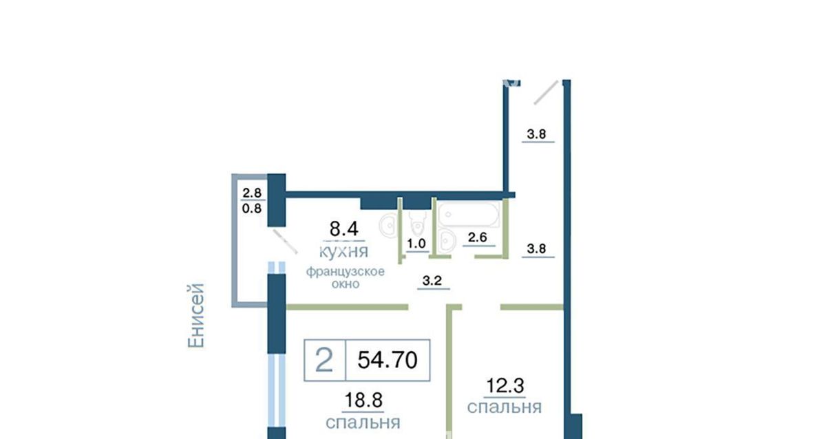 2-к кв. Красноярский край, Красноярск ул. Дубровинского, 110Б (54.7 м²)