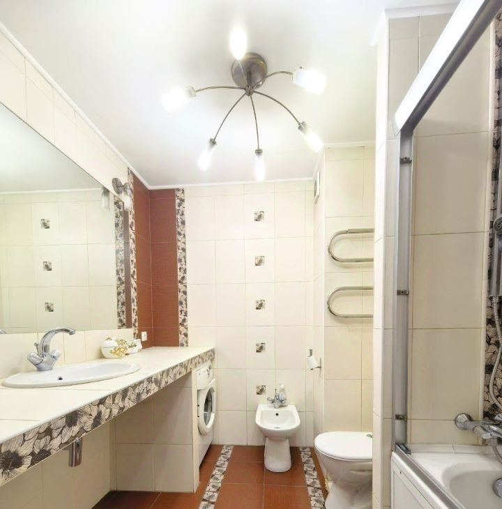 двухспальная кровать, модульный диван, встроенная гардеробная, шкаф в прихожей, прикроватные тумбы, холодильник, стиральная машина, посудомоечная машина, плита, духовой шкаф, зеркала, телевизор, кондиционер, журнальный столик, гладильная доска, сушилка для одежды - здесь есть всё необходимое для вашего удобства!