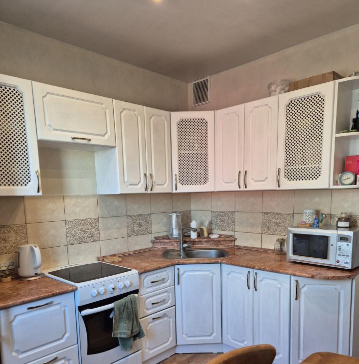 В квартире остаются встроенные шкафы в коридоре, по желанию кухонный гарнитур.