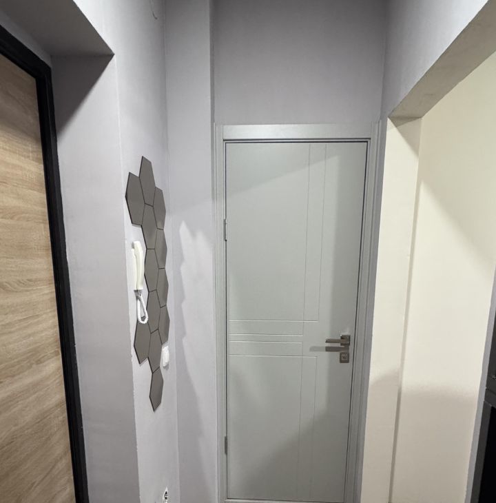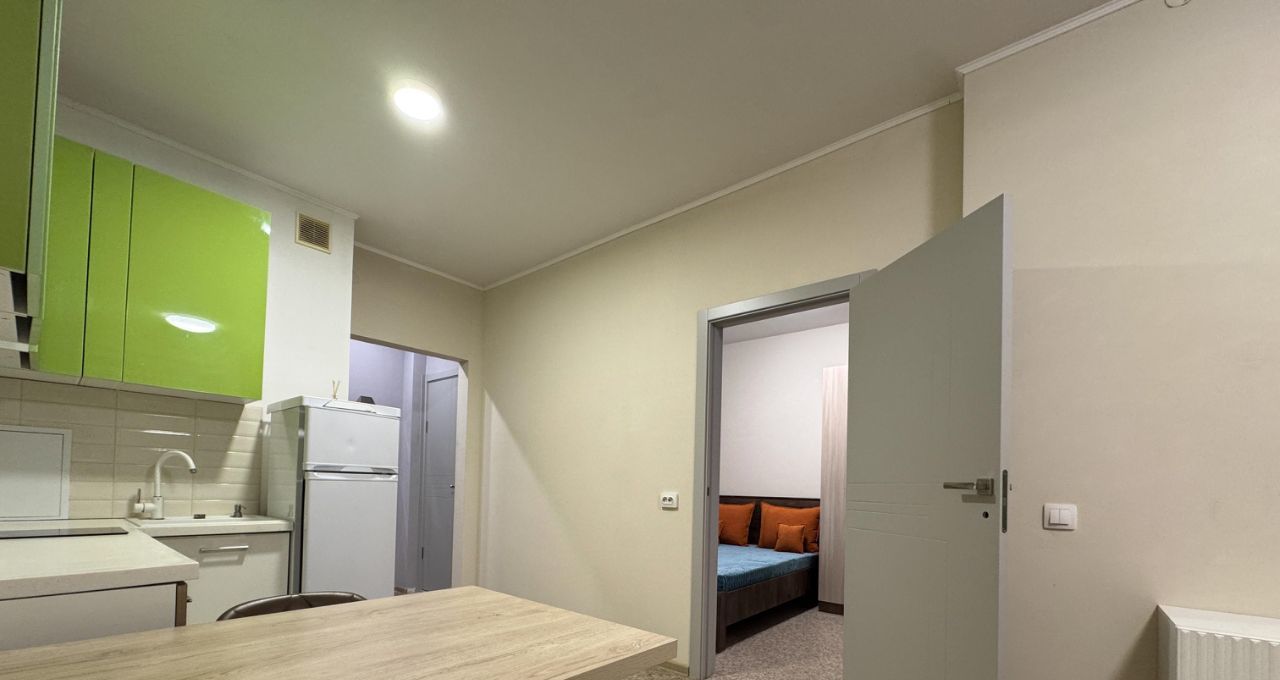 В квартире сделан косметический ремонт. На кухне и в одной из комнат есть необходимая мебель. Планировка удобная, с совмещённым санузлом.