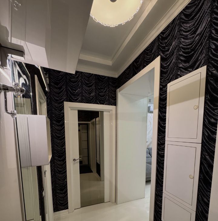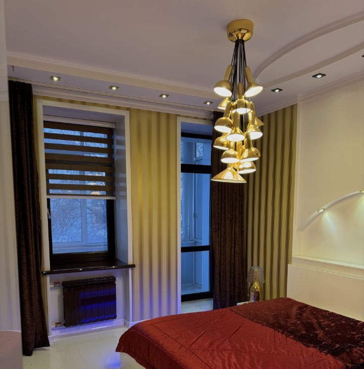 В ванной теплый пол, в каждой комнате от 4х сценариев освящения, продумано все до мелочей, ремонт делали для себя. Балкон застеклен, на полу керамогранит. Безупречная звукоизоляция — соседей не слышно вообще за счет толщины стен. Для комфорта — в каждой комнате имеются шторы/жалюзи блэкаут. На лестничной площадке всего по две квартиры.